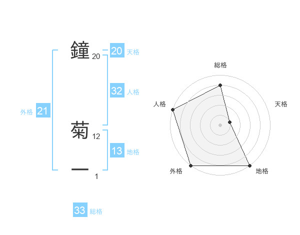 鐘 菊一さんを姓名の画数から五運を鑑定