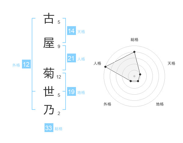 古屋 菊世乃さんを姓名の画数から五運を鑑定
