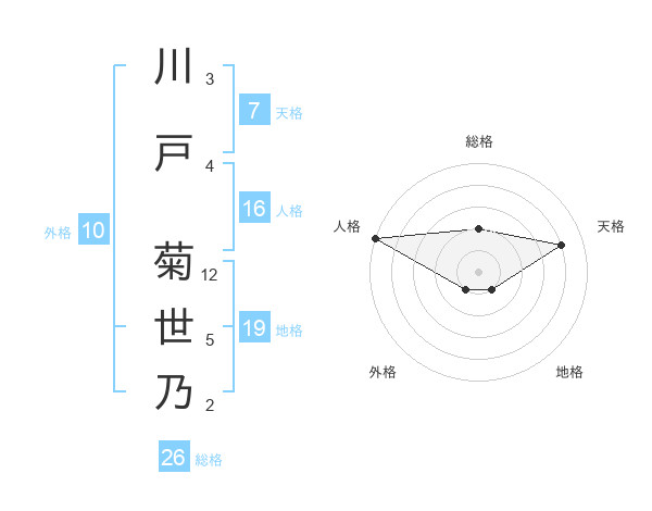 川戸 菊世乃さんを姓名の画数から五運を鑑定
