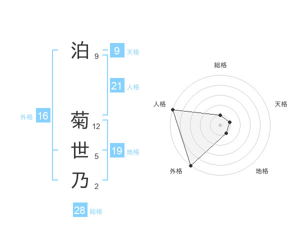 泊 菊世乃さんを姓名の画数から五運を鑑定