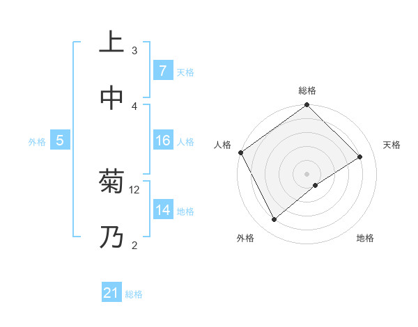 上中 菊乃さんを姓名の画数から五運を鑑定