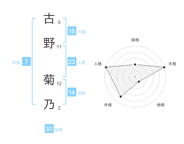 古野 菊乃さんを姓名の画数から五運を鑑定