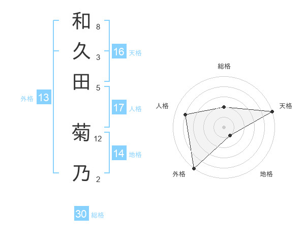 和久田 菊乃さんを姓名の画数から五運を鑑定