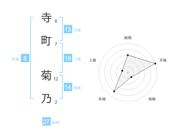 寺町 菊乃さんを姓名の画数から五運を鑑定