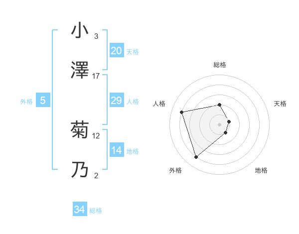 小澤 菊乃さんを姓名の画数から五運を鑑定