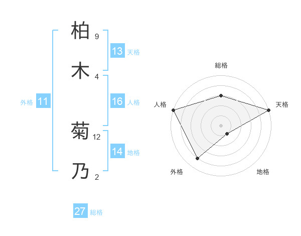柏木 菊乃さんの総格は27画の3点!