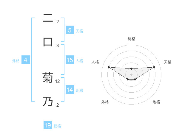 二口 菊乃さんを姓名の画数から五運を鑑定