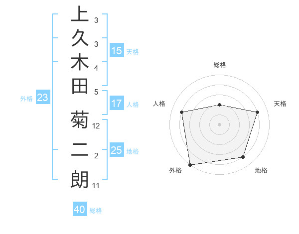 上久木田 菊二朗さんの外格は23画の5点!