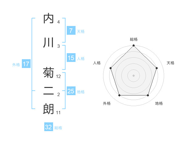 内川 菊二朗さんを姓名の画数から五運を鑑定