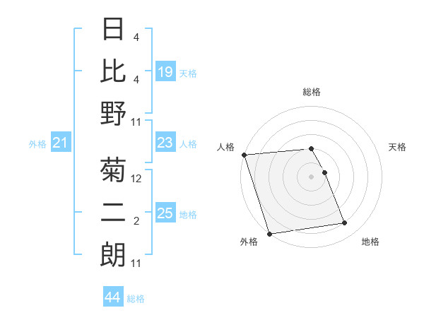 日比野 菊二朗さんの外格は21画の5点!