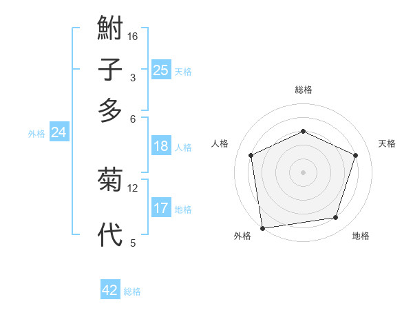 鮒子多 菊代さんの総格は42画の3点!