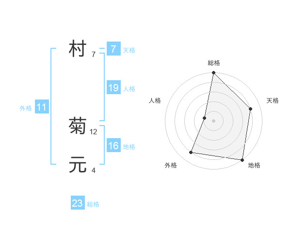 村 菊元さんの総格は23画の5点!