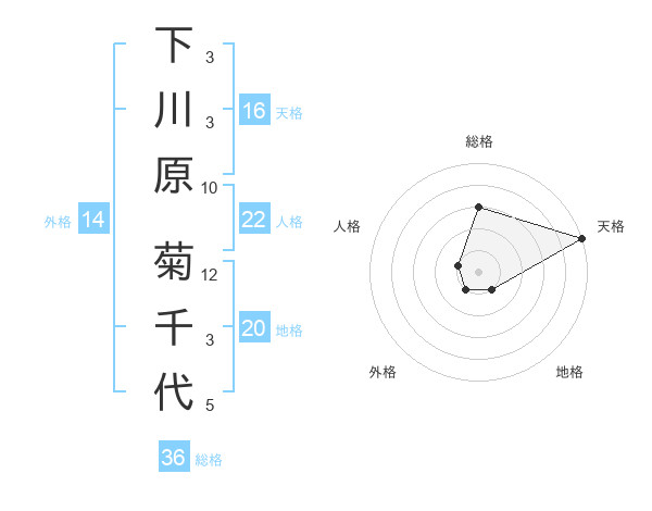 下川原 菊千代さんを姓名の画数から五運を鑑定