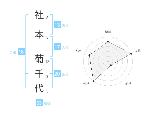 社本 菊千代さんを姓名の画数から五運を鑑定