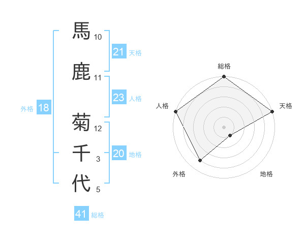 馬鹿 菊千代さんの天格は21画の5点!
