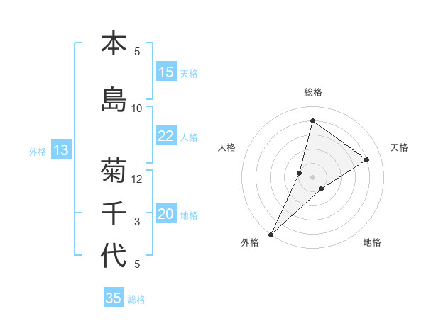 本島 菊千代さんを姓名の画数から五運を鑑定