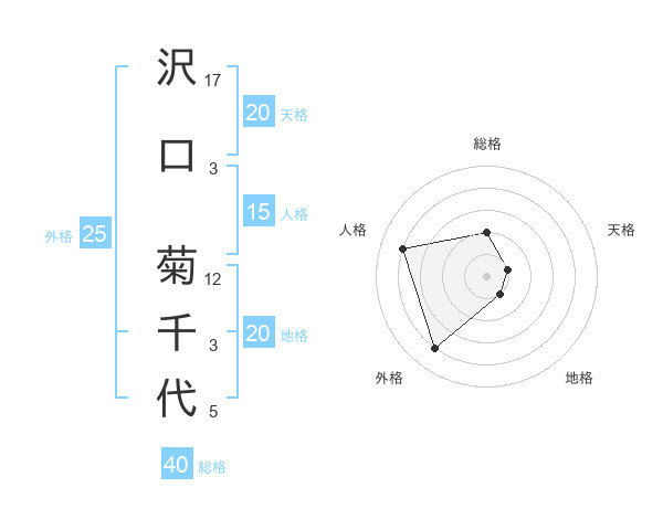 沢口 菊千代さんを姓名の画数から五運を鑑定