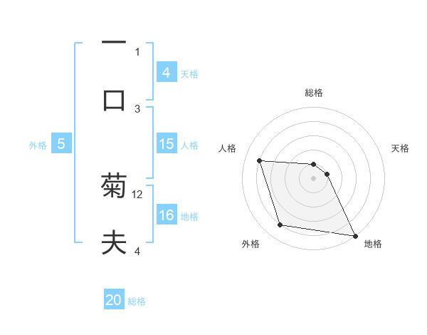 一口 菊夫さんの総格は20画の1点!