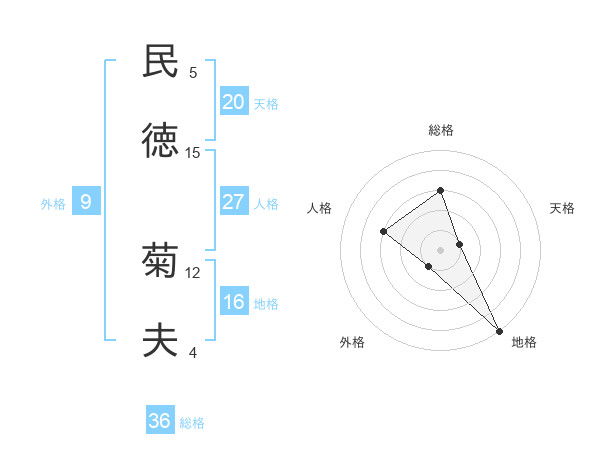 民徳 菊夫さんの総格は36画の3点!