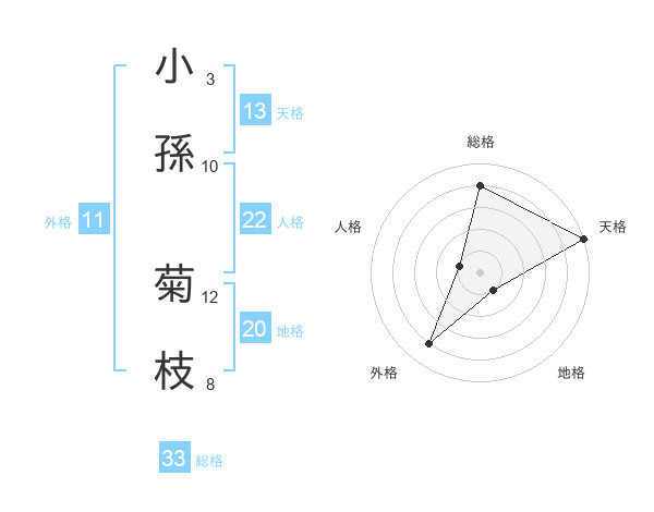 小孫 菊枝さんの総格は33画の4点!