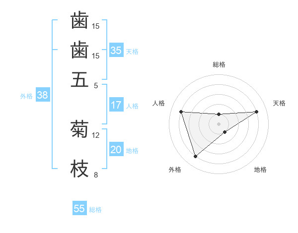 歯歯五 菊枝さんの外格は38画の4点!