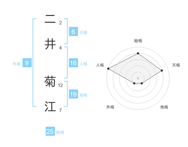二井 菊江さんの総格は25画の4点!