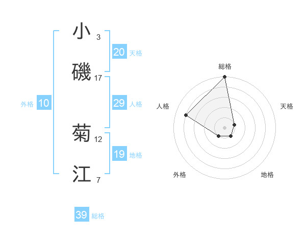 小磯 菊江さんを姓名の画数から五運を鑑定
