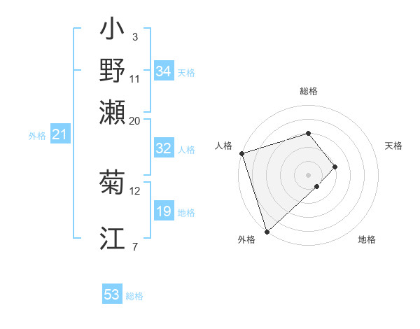 小野瀬 菊江さんの外格は21画の5点