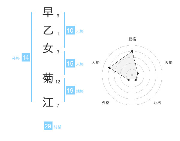 早乙女 菊江さんを姓名の画数から五運を鑑定