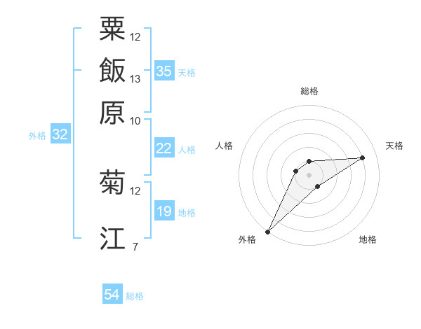 粟飯原 菊江さんの外格は32画の5点!