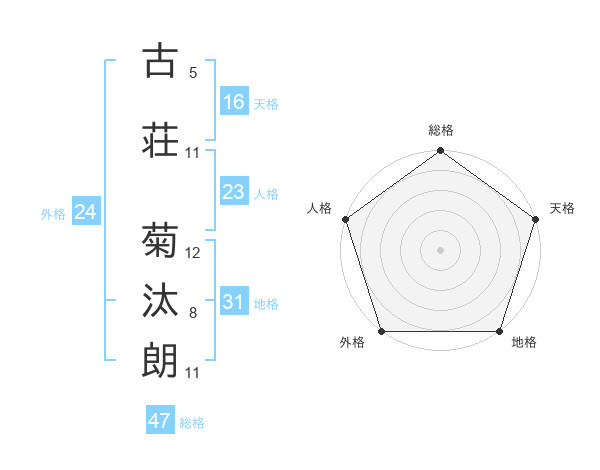 古荘 菊汰朗さんを姓名の画数から五運を鑑定