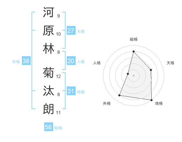河原林 菊汰朗さんの総格は58画の4点!