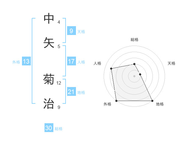 中矢 菊治さんを姓名の画数から五運を鑑定