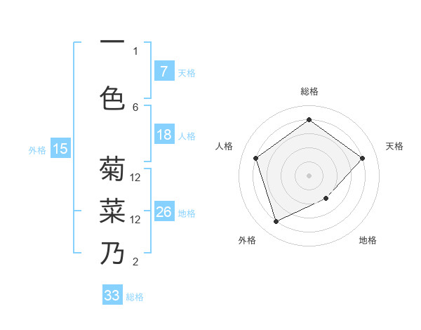 一色 菊菜乃さんを姓名の画数から五運を鑑定