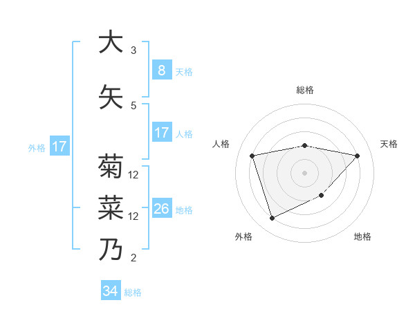 大矢 菊菜乃さんを姓名の画数から五運を鑑定