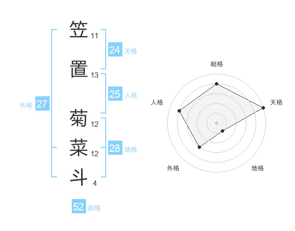 笠置 菊菜斗さんを姓名の画数から五運を鑑定