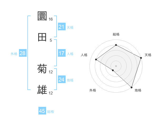 圜田 菊雄さんを姓名の画数から五運を鑑定