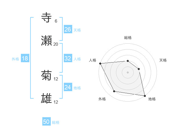 寺瀬 菊雄さんを姓名の画数から五運を鑑定