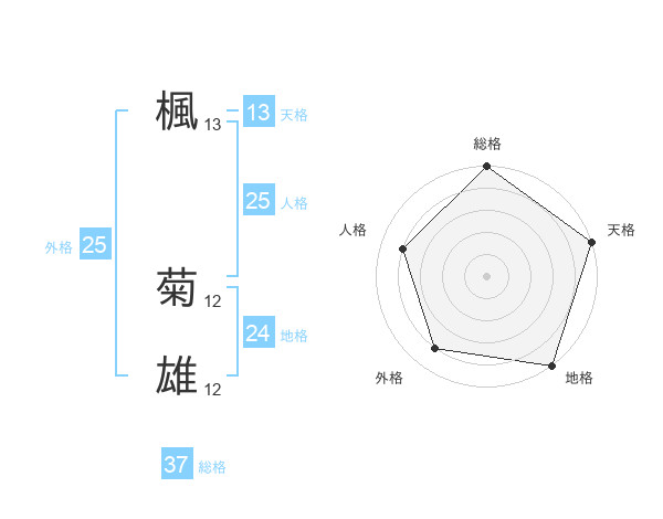 楓 菊雄さんを姓名の画数から五運を鑑定