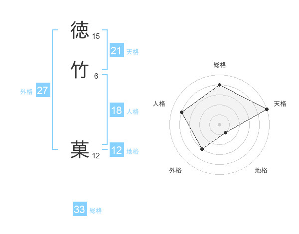 徳竹 菓さんを姓名の画数から五運を鑑定