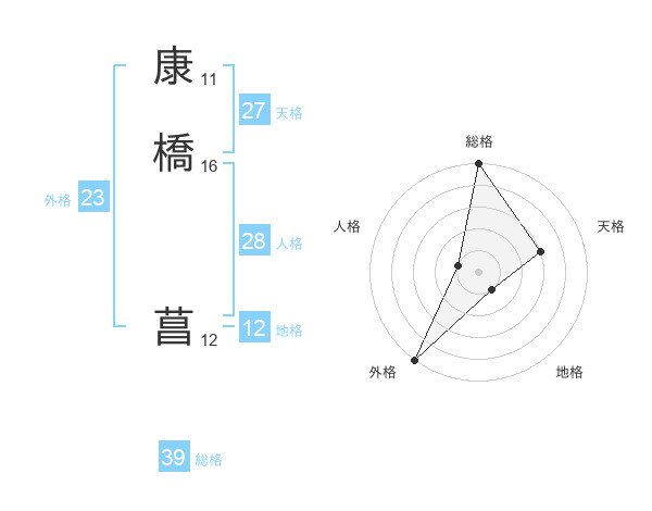 康橋 菖さんの天格は27画の3点!