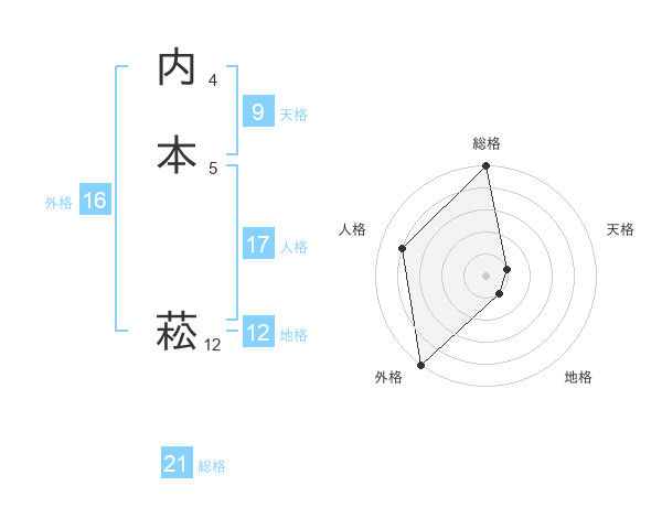 内本 菘さんの総格は21画の5点!