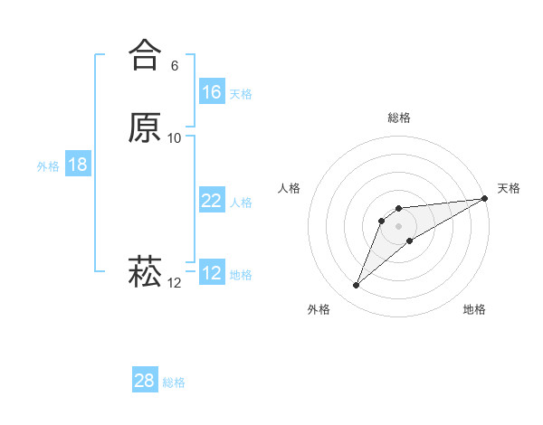 合原 菘さんの天格は16画の5点!