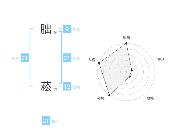 朏 菘さんの人格は21画の5点!