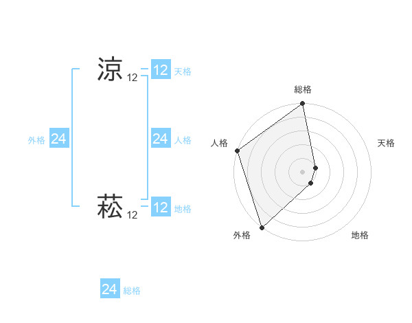涼 菘さんの外格は24画の5点!