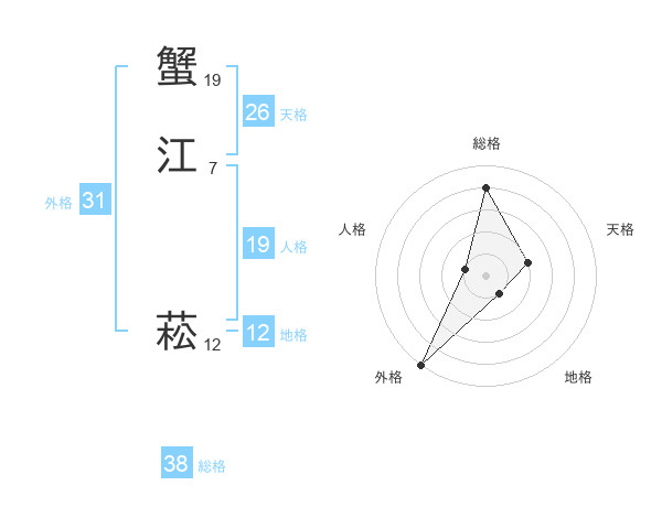 蟹江 菘さんの総格は38画の4点!