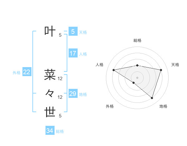 叶 菜々世さんを姓名の画数から五運を鑑定