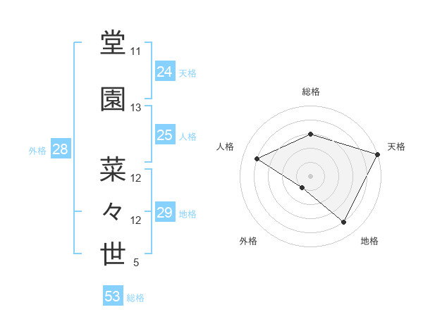 堂園 菜々世さんの天格は24画の5点!