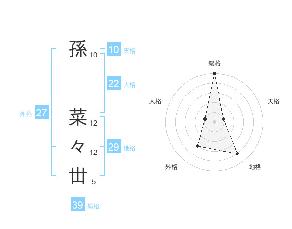 孫 菜々丗さんの地格は29画の4点!