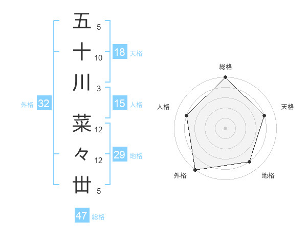 五十川 菜々丗さんの総格は47画の5点!